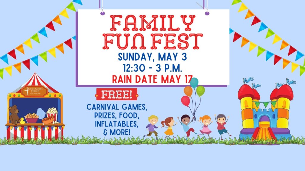 Grace Gospel is gearing up for our free event! It is a great time for the family and you won't want to miss it! Free games & prizes, cotton candy, nachos, hamburgers, hot dogs, bouncy house, inflatable slide and more!